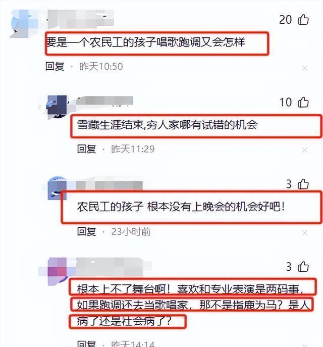 评论区的留言都在毫不留情地吐槽她,没实力就别来祸祸观众。 话糙理不糙,毕竟这要是一个农民工的孩子唱成这样,基本上后半辈子也不会在圈内混下去了。